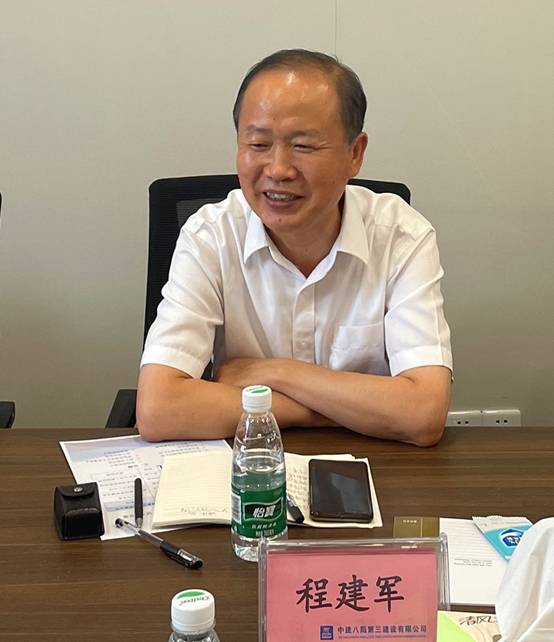 中建八局三公司專務程建軍、副總工程師沈興東、技術中心主任黃峰等熱情接待董事長之行。交流會上,程總對集團一行的到來表示熱烈歡迎,結合八局三公司宣傳片,介紹了三公司的發展歷史和新形勢下的發展戰略。